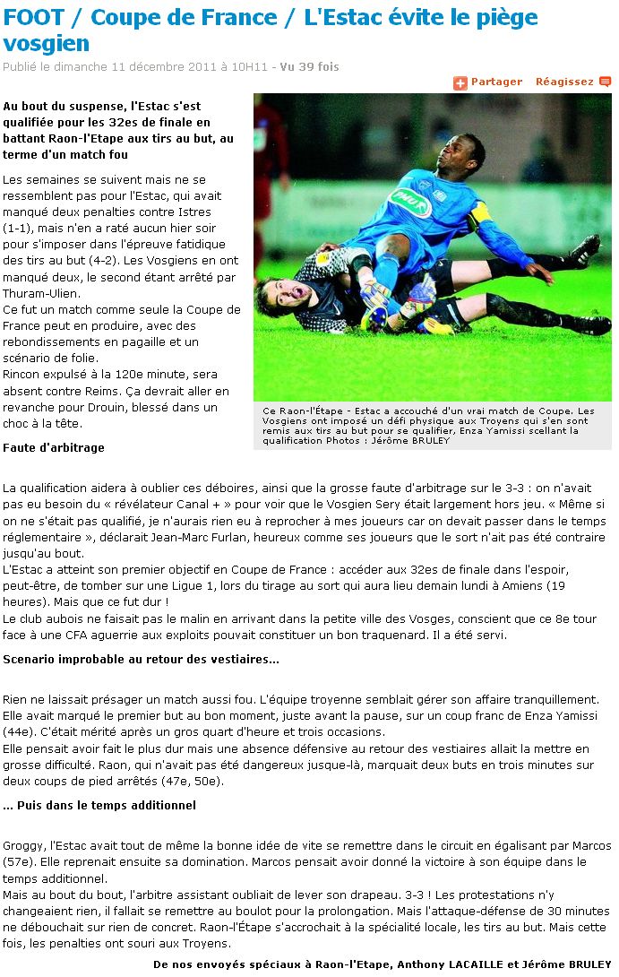 L'Est Eclair du dimanche 11/ décembre 2011 :