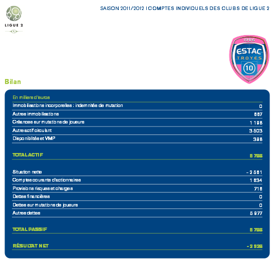 Pour le reste comme je l'ai déjà dit, on a commencé l'exercice 2012/2013 avec un trou de 1,6M€. Mais la saison prochaine on devrait repartir à l'équilibre, ce qui est le fruit de 4 ans de travail. Durant lesquels, soit dit en passant, la "radinerie" de notre président nous a amené du National à la L1.