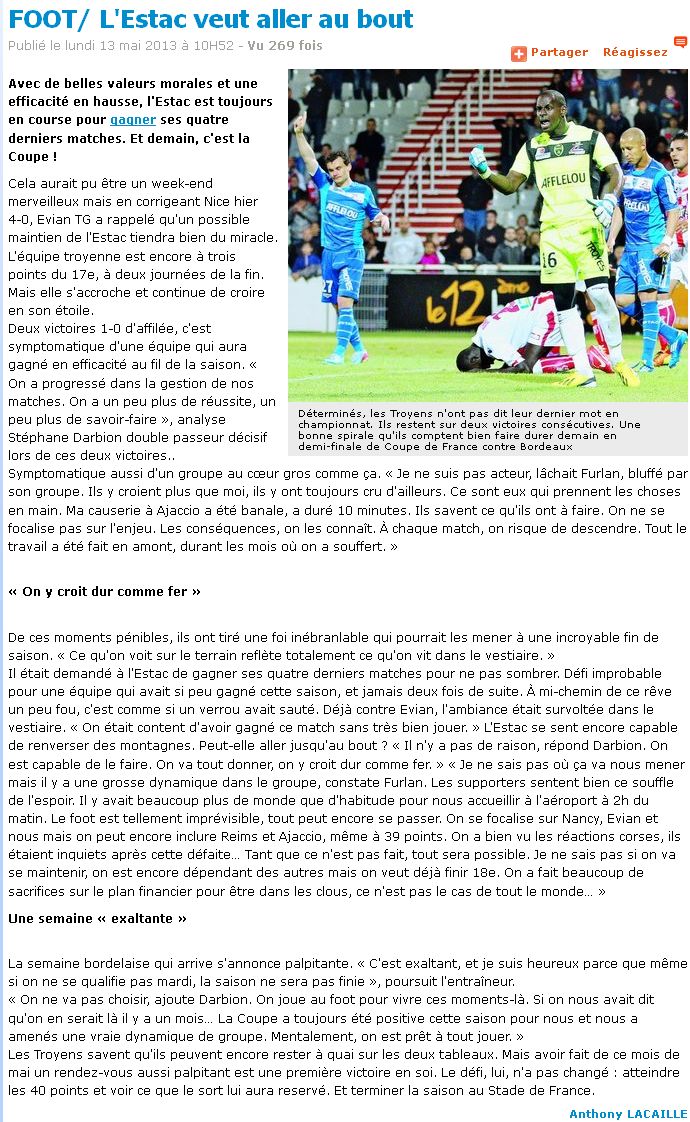Non, on peut gagner à VA sans qu''ils ne fassent un non match (on n'est pas des peintres non plus hein, on peut gagner grâce à nos qualités et devant un adversaire à la hauteur) et Bastia peut l'emporter face à Sochaux sans une implication maximale de leur part.