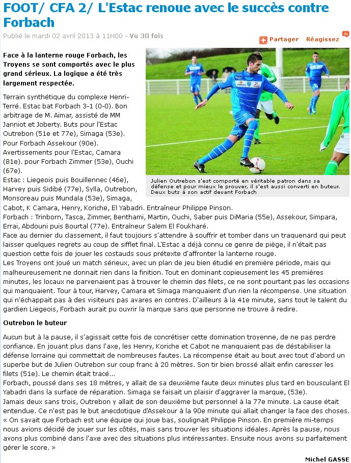 Pourquoi faire jouer Camus qui n'est que prêté et qui, à mon avis ne restera pas jouer à Troyes en L2 alors que l'on a prolongé Darbion?