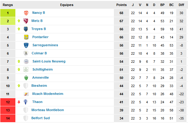 En cas d'égalité à 3 avec Pontarlier et Metz qui passe deuxième ?