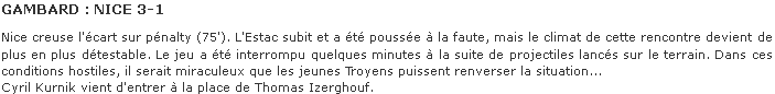 Le début nicois fut exeptionnel avec 2-0 après 20 minutes.