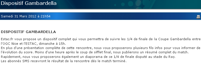 Rejoint nous sur le live Electronic-cat pour poster, voici l'adresse : http://www.estacweb.com/wordpress/3136/ ... mment-2580Electronic-cat a écrit :2-1 Pour Nice a la mi-temps.