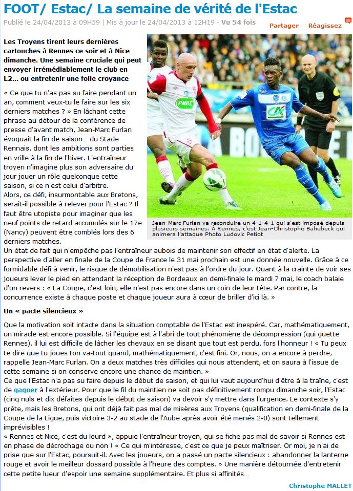 Mais il est clair que tout sera fini pour l'ESTAC dès mercredi soir en cas de défaite.