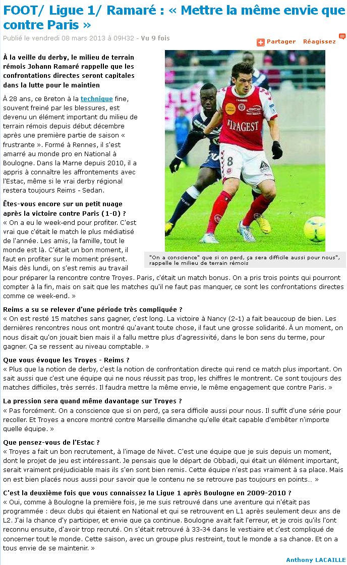 L'Est Eclair du vendredi 8 mars 2013 :