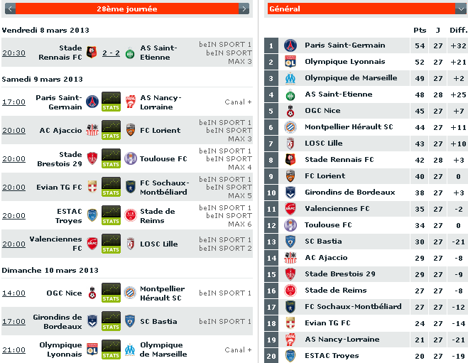 Le programme de la 28ème journée selon la LFP :