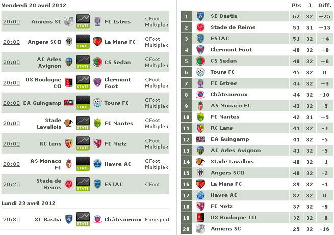 Mais de toutes manières, ça va probablement être le jeu des chaises musicales pour la 3ème place jusqu'au bout, (chacun s'y asseyant tour à tour) et bonheur à celui qui si essayera lors de la 38ème journée, j'ai le sentiment qu'aucune équipe ne va filer. Il faudrait remonter notre différence de but, ça risque d'être très utile (nous ne sommes qu' à 2 buts de sedan)