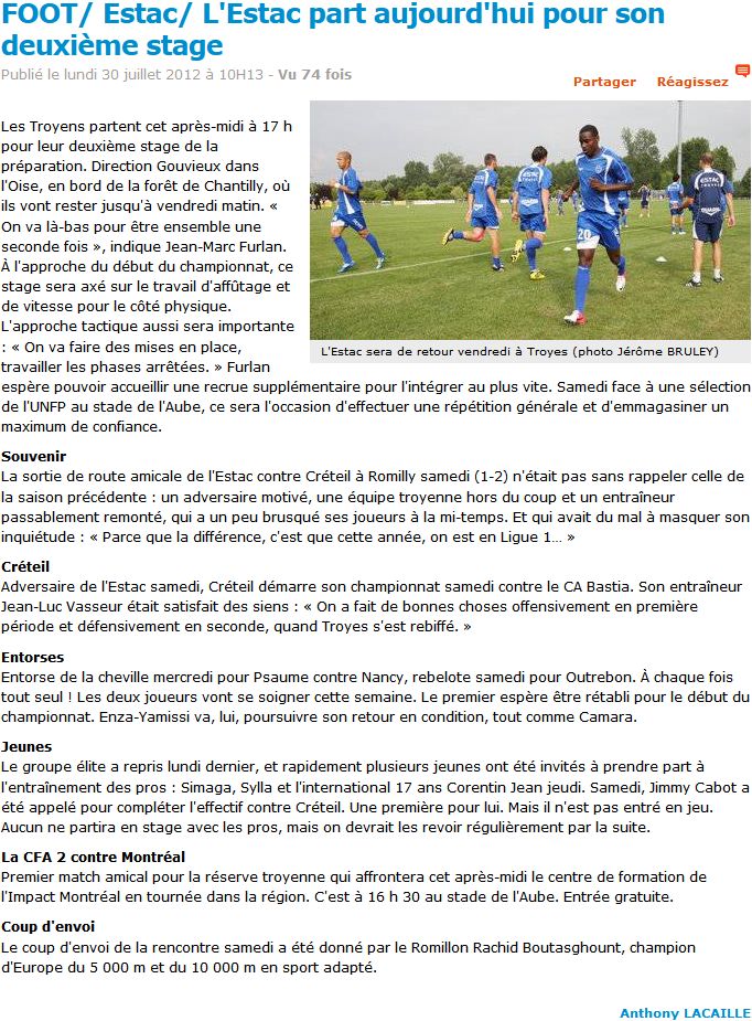 L'Est Eclair du vendredi 27 juillet 2012 :